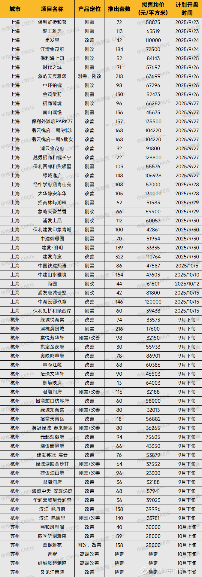 根据中指监测,2025年8月25日-9月21日,房企推盘积极性提升,华东大区重点城市上海、杭州、苏州3个重点城市累计79个项目开盘,推出房源6259套,环比增长87.5%。其中,上海的外滩瑞府等19个项目,杭州的绿城丽香庭等19个项目,由于区位优势、周边配套丰富、通达性好等原因实现开盘热销,去化效果非常好。