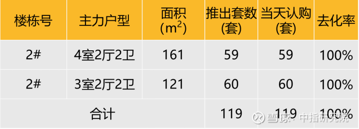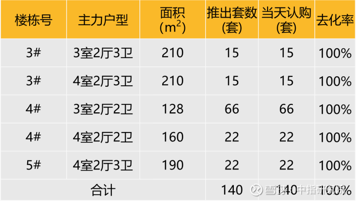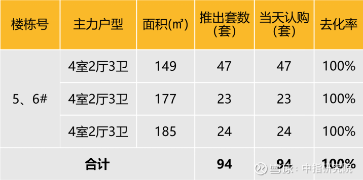 认购去化:项目吸引了338组家庭登记,中签率低至27.8%,选房当天共认购94套房源,去化率100%。