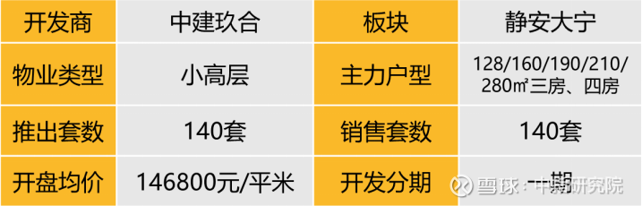 认购去化:中建·玖上琅宸已于9月21日开盘,共推出140套房源,主力户型为128/160/190/210/280㎡三房、四房,均价146800元/㎡,一房一价,目前房源已售罄,去化率100%。