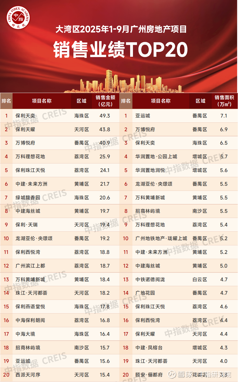 图:2025年1-9月广州房地产项目销售业绩TOP20