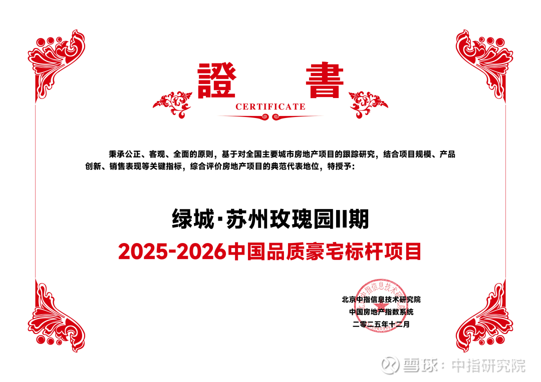 绿城·苏州玫瑰园Ⅱ期依托绿城“玫瑰系”29年营造积淀与五大玫瑰法则,以法式经典建筑、双湖稀缺低密资源、精工细节与创新户型,叠加现象级市场表现,荣膺“2025-2026中国品质豪宅标杆项目”称号。