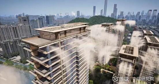 装置利用楼顶喷头将水雾化为直径约50微米的小水滴,小水滴在蒸发过程中会吸收周围空气的热量,短期内降低地表温度,兼具景观与降温效果。