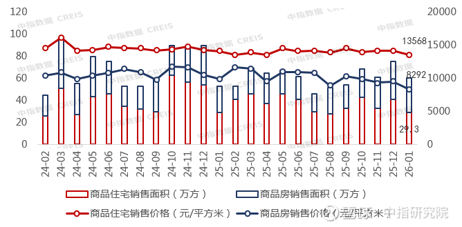 为持续促进房地产市场平稳健康发展,今年1月重庆进一步优化购房政策,自1月27日起商业用房(含商住两用房)购房贷款最低首付款比例下调至不低于30%。2026年重庆将加力实施“八大提振行动”,着力稳定市场预期,推动供给侧改革与存量去化,明确提出以“好房子”建设引领市场新需求,全年计划新开工相关项目40个、打造示范项目10个以上。根据中指监测,2026年1月重庆中心城区成交商品房60.5万㎡,其中商品住宅成交29.3万㎡,成交均价为13568元/㎡。