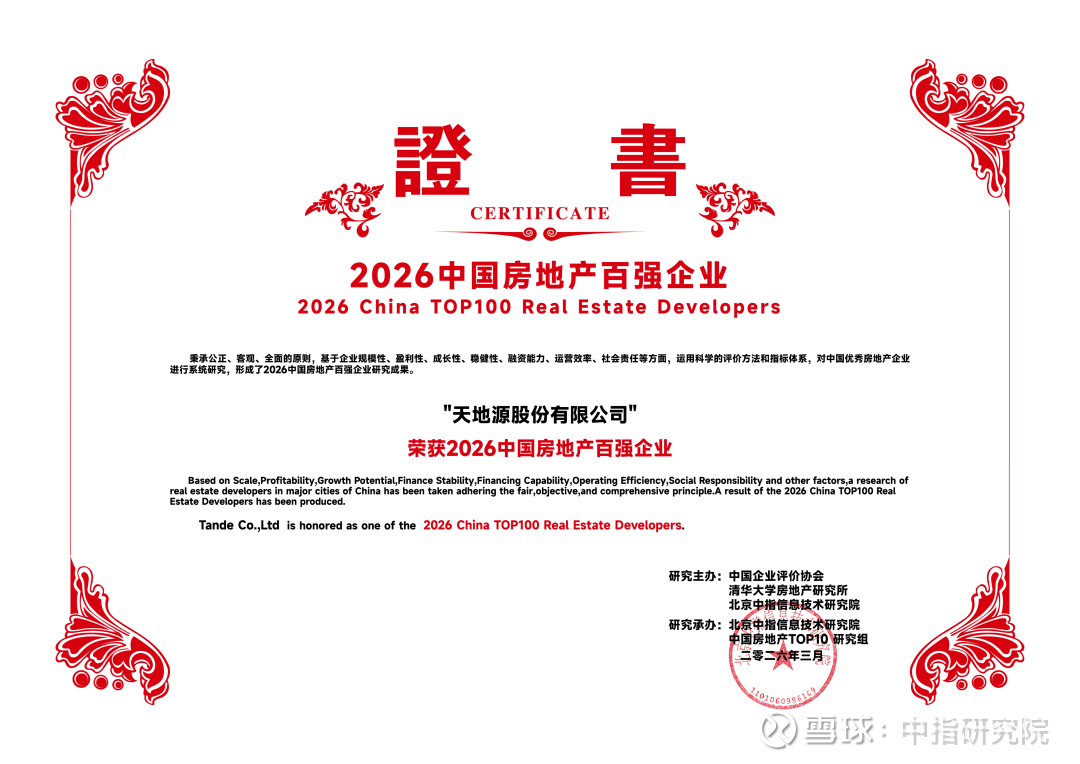 2026年3月26日,由中国企业评价协会、清华大学房地产研究所、北京中指信息技术研究院主办,北京中指信息技术研究院中国房地产TOP10研究组承办的“2026中国房地产百强企业研究成果发布会暨第二十三届中国房地产百强企业家论坛”在北京召开。