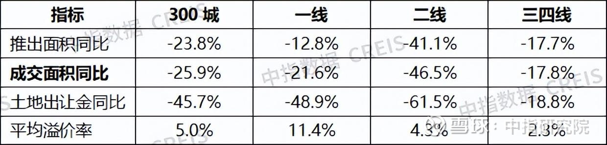 根据中指数据,一季度(截至3月28日),300城住宅用地推出规划建面6472万平方米,同比下降23.8%;成交5893万平方米,同比下降25.9%;土地出让金2154亿元,同比下降45.7%;平均溢价率为5.0%,除广州、上海、杭州等地核心地块竞拍出高溢价外,多地土拍情绪保持平淡。