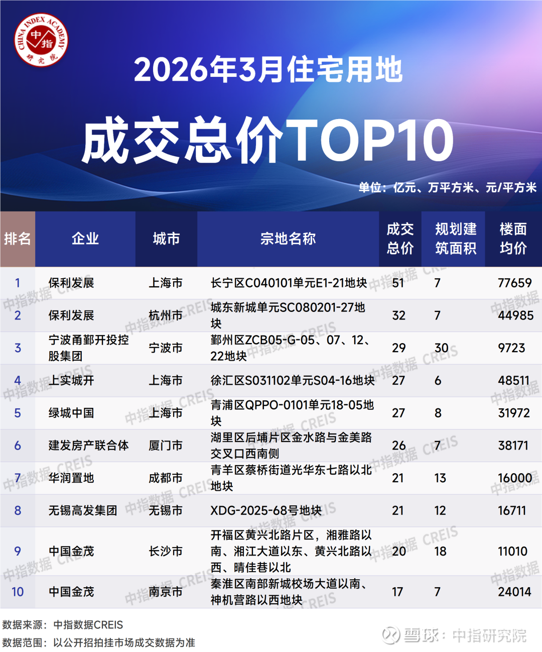 3、从住宅用地成交总价TOP10来看,头部企业争夺上海、杭州等城市优质地块