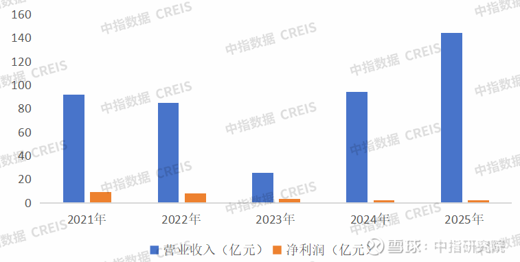 从收入贡献看,住宅开发业务的支柱地位无可撼动。2021-2025年,该业务收入占公司总营业收入的比重始终维持在75%以上,并在2025年达到97.39%的历史峰值。2023年占比阶段性下滑至75.40%,主要源于当年新项目开盘不足导致结算收入骤降,而非战略调整。2024-2025年,随着上海露香园、璟雲里二期等重点项目集中进入交付结转期,业务收入强势反弹,2025年实现收入140.79亿元,同比大幅增长55.9%,直接推动了公司整体营收创下五年新高。