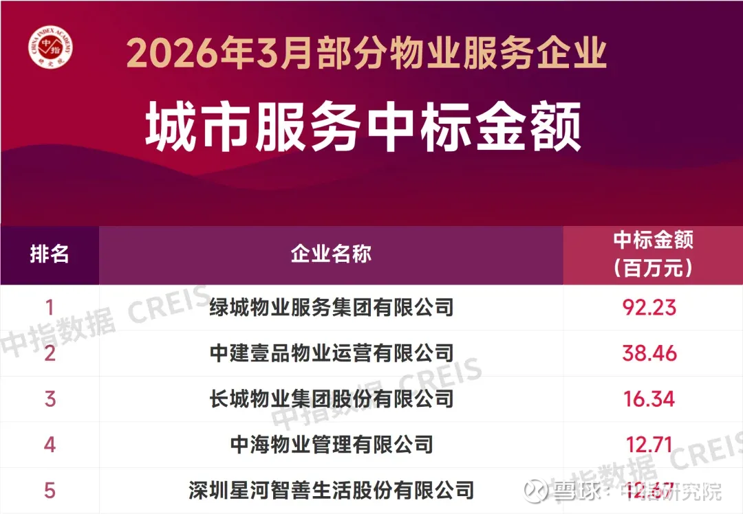 2026年3月城市服务中标TOP5