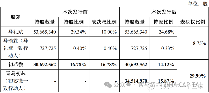 上述所有步骤完成后,初芯微及其一致行动人青岛初芯的合计持股比例将达到29.99%,无限接近30%的要约收购红线,控股地位将得到极大巩固。原实控人马礼斌的持股比例将降至24.68%,表决权比例仅为10%。