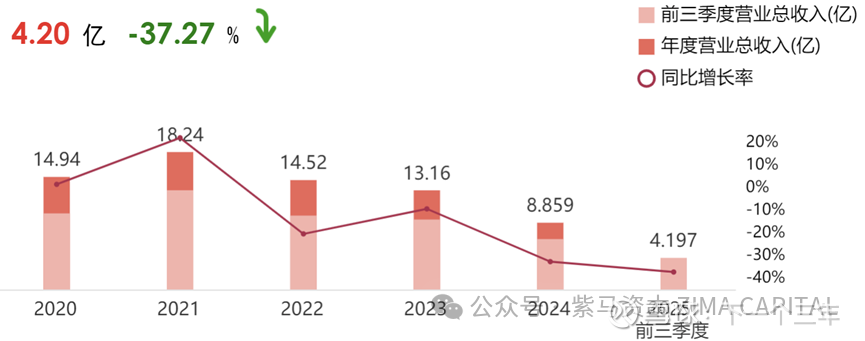 公司经营正面临巨大挑战。受房地产行业下行及市场竞争加剧影响,受房地产行业下行冲击巨大,公司业绩断崖式下滑。营收从2021年的18.24亿元跌至2024年的8.86亿元,同期净利润由盈利1.54亿元转为巨额亏损3.75亿元。