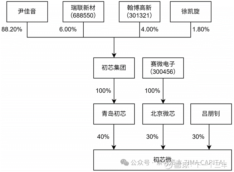 直接收购主体杭州初芯微的股东包括上市公司赛微电子-MEMS芯片制造龙头,而初芯集团的股东还包括瑞联新材和翰博高新。这意味着“初芯系”背后是一个覆盖芯片、材料、器件的硬科技产业生态联盟,资源调动能力非凡。