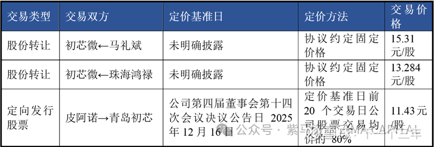 定价逻辑:这笔交易附带《表决权放弃协议》,使收购方初芯微能取得公司控制权。因此,价格中包含了“控制权溢价”,反映了收购方为获得控股权所支付的额外对价。