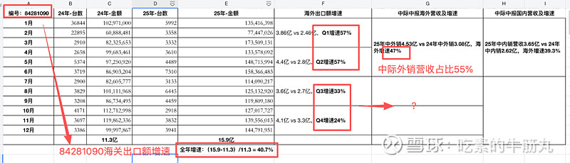 3、我对比了下24年1-12月与25年1-12月数据,大致能对得上相关度,中际海外营收占比55%,国内占比45%,两者增速差距不大,上下几个点,所以跟踪海外已经很有代表性。