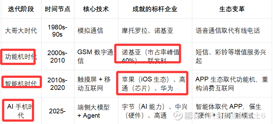 五、手机行业迭代规律:每 10 年一次革命,成就一批生态巨头