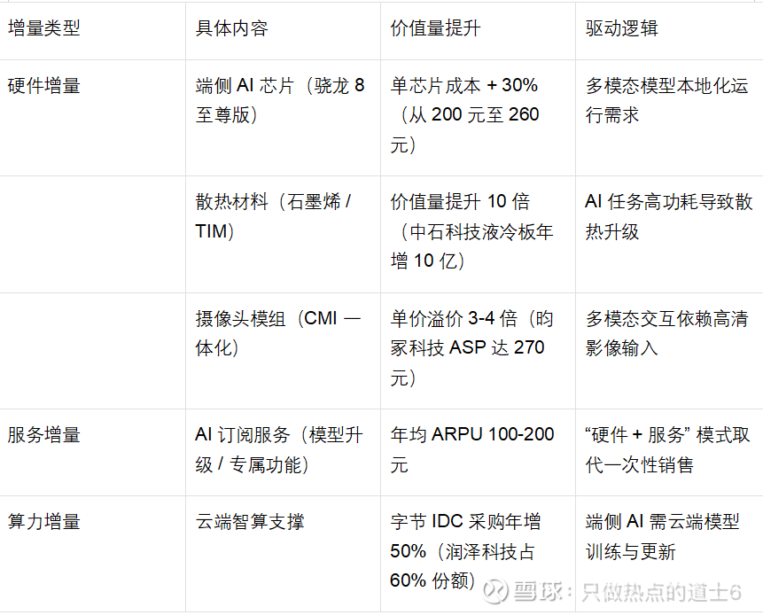 爆发信号:需满足两点 ——① 端侧 AI 成本下探至中端机型(当前豆包机型 3499 元,目标下探至 2000 元档);② 出现生产力场景刚需(如 AI 自动生成 PPT、实时跨语言会议翻译)。