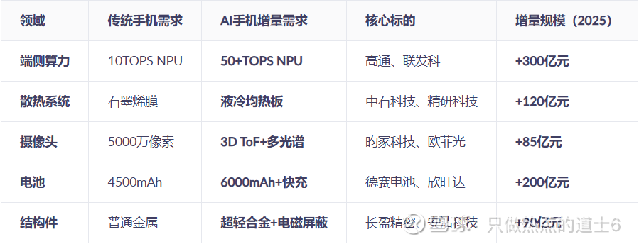 时间窗口:预计 2027-2028 年实现 1 到 10 的跨越,届时 AI 手机渗透率将突破 50%,带动全球换机潮。