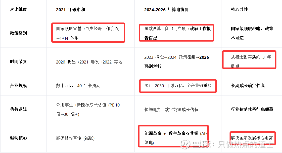 它不仅仅是“东数西算”的升级版,更是AI 时代能源基础设施的重构。与 2021 年碳中和相比,其需求端(AI 算力)的增长更为刚性,政策端(强制绿电比例)的约束更为具体。