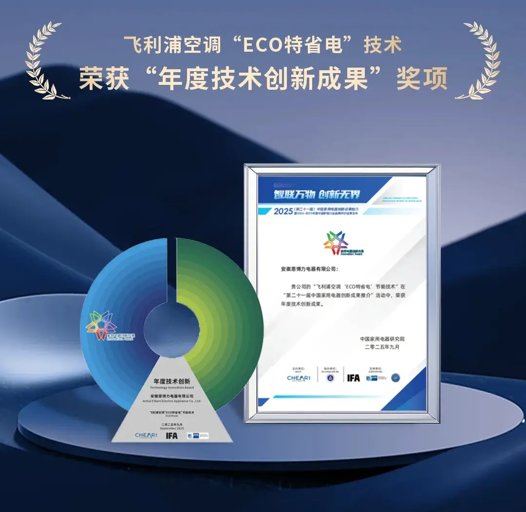 9月5日,第二十一届中国家用电器创新成果推介活动的最终结果在IFA 2025上揭晓。飞利浦空调以其领先的“ECO特省电”技术,在活动中脱颖而出,一举摘得“年度技术创新成果”奖项,彰显了其在节能创新领域的卓越实力,在节能赛道中的先锋标杆地位。