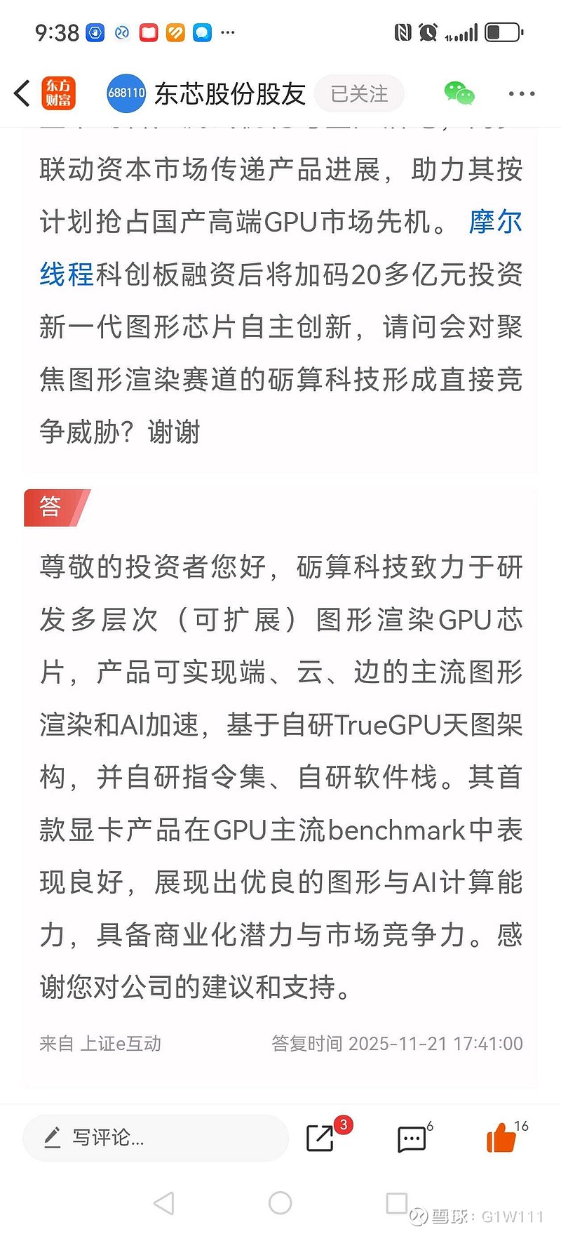$东芯股份(SH688110)$11月22日周六上午前天东芯300万股不到1%的竟价减持公告刚发,昨天盘后的董秘问答中带来了3个月送样测试的阶段大利好成果。可能很多人被昨天的大跌弄蒙了,视而不见。研读分析官方信息,才能拿得住。