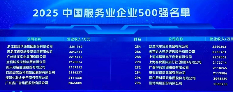 9月18日,中国企业联合会、中国企业家协会在重庆发布“2025中国服务业企业500强”榜单,其中,老百姓大药房再度登榜,位列第286位。