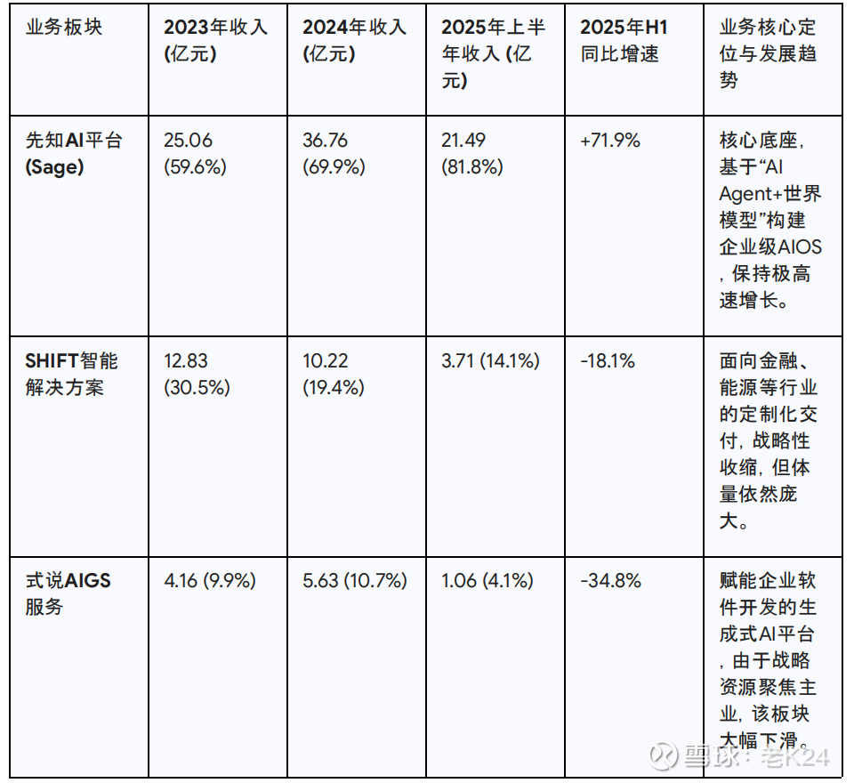 其次是“SHIFT智能解决方案”。这是基于先知平台底层能力延伸出的行业深度定制化项目。尽管管理层在多次路演中强调,由于定制化业务利润率较低,公司已“几乎不做”此类项目,意图向标准化产品转型 。但财务数据的客观现实是,2024年该业务依然贡献了超10亿元人民币的收入,即使在战略收缩的2025年上半年及三季度,该板块收入依然分别达到3.71亿元和6.02亿元人民币(占三季度总营收13.7%)。这深刻表明,在中国企业级服务市场,完全脱离贴身驻场定制的纯软件交付道路阻力重重,定制化业务呈现出极强的“尾大不掉”特征 。