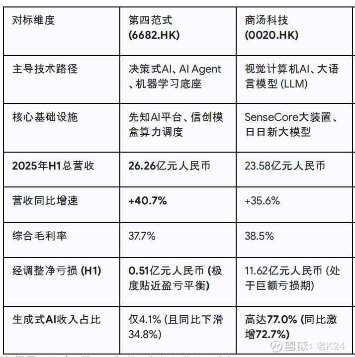 下表直观展示了第四范式与商汤科技(0020.HK)在2025年上半年的核心基本面对比: