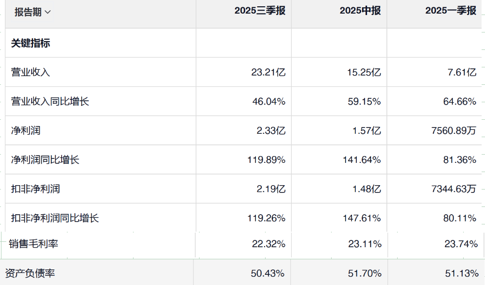 公司属于电子元件行业,具有铜缆高速连接概念|正股质地优+波动较大。2025年三季度报告显示,公司销售毛利率呈下滑态势,但营收及利润均为正增长,资产负债率<52%。