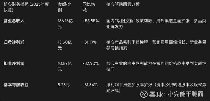“第二曲线”止血与轻装上阵:导致2025年净利润暴跌的重要元凶——洗衣机等新业务的巨额亏损(约5-6亿元),在经过2025年中期的裁员和业务线剧烈收缩后,预计在2026年将不再对净利润造成重大拖累。仅凭这一项“止血”操作,公司的表观利润就将迎来可观的反弹。