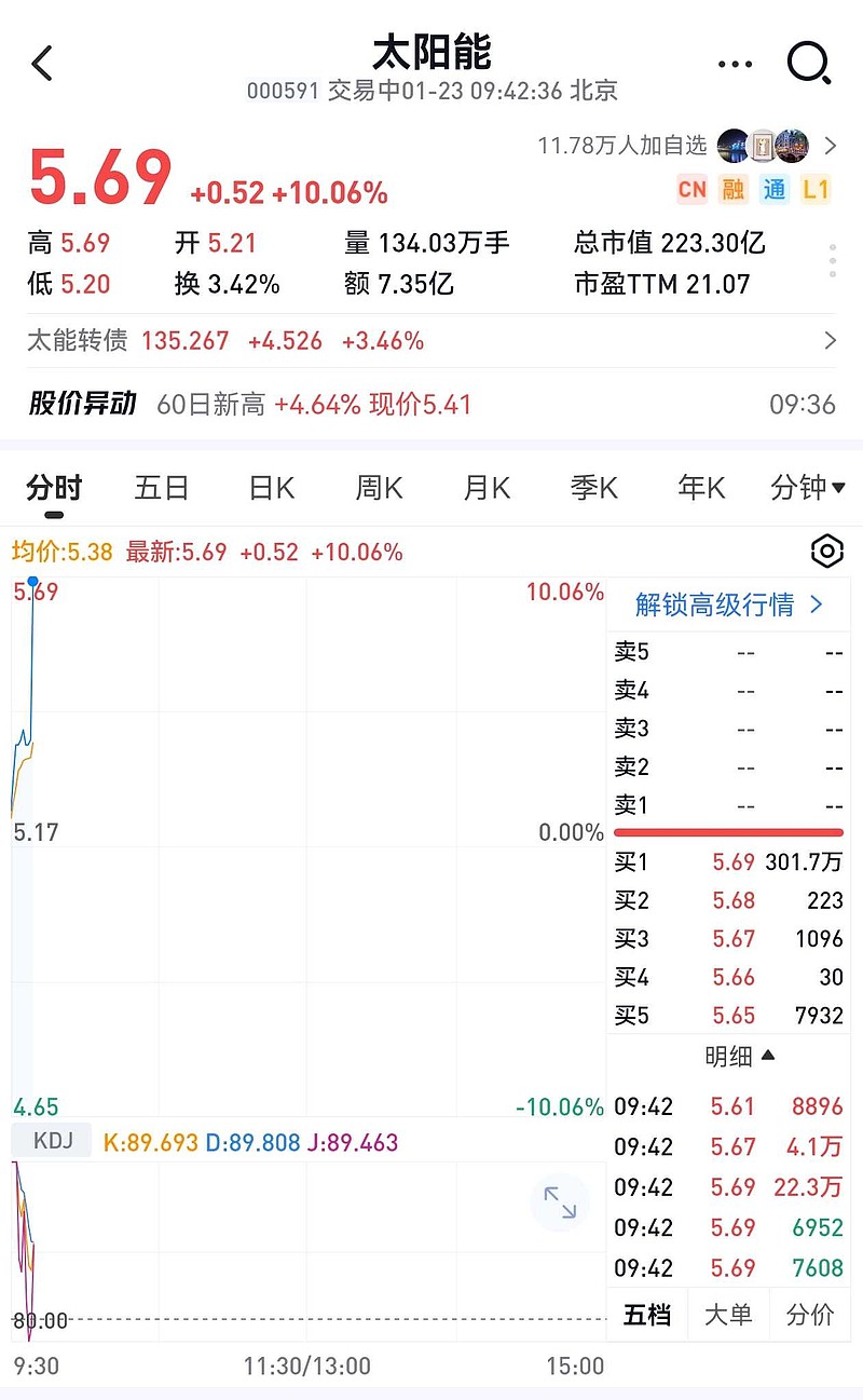 $太阳能(SZ000591)$
