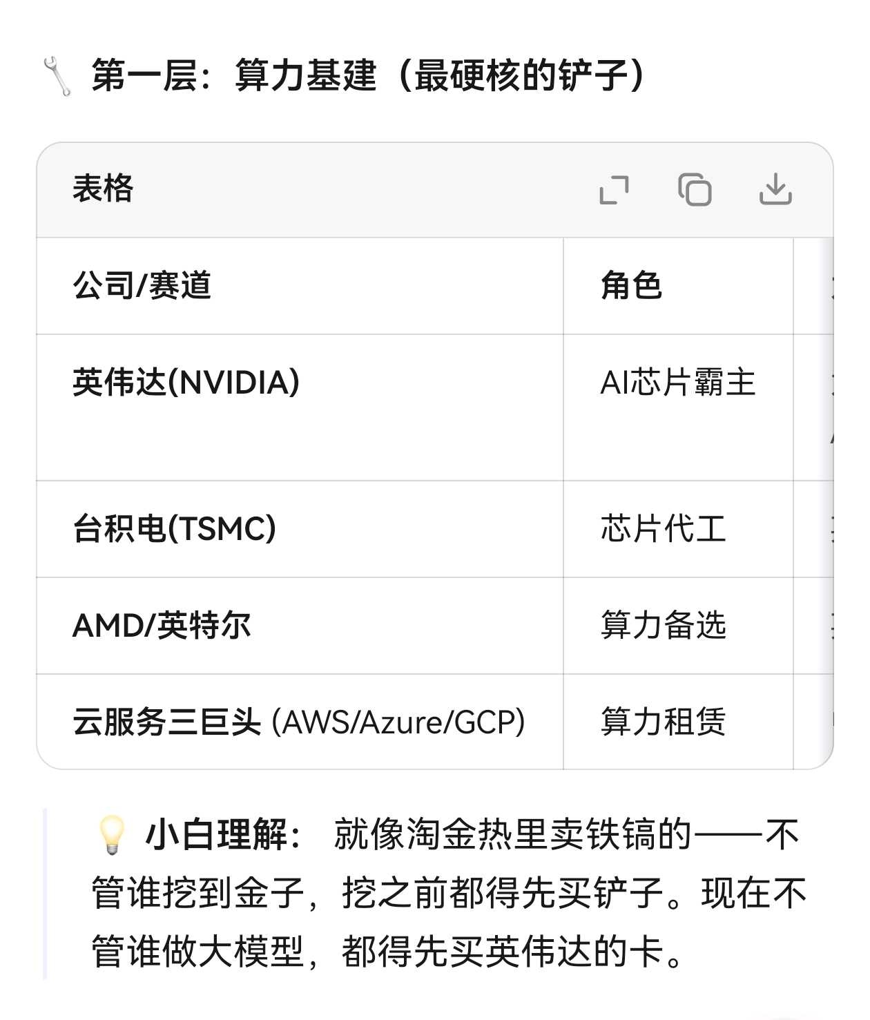 第一层,算力基建,大家都能想到,现在整体股价也快涨上天了![]()