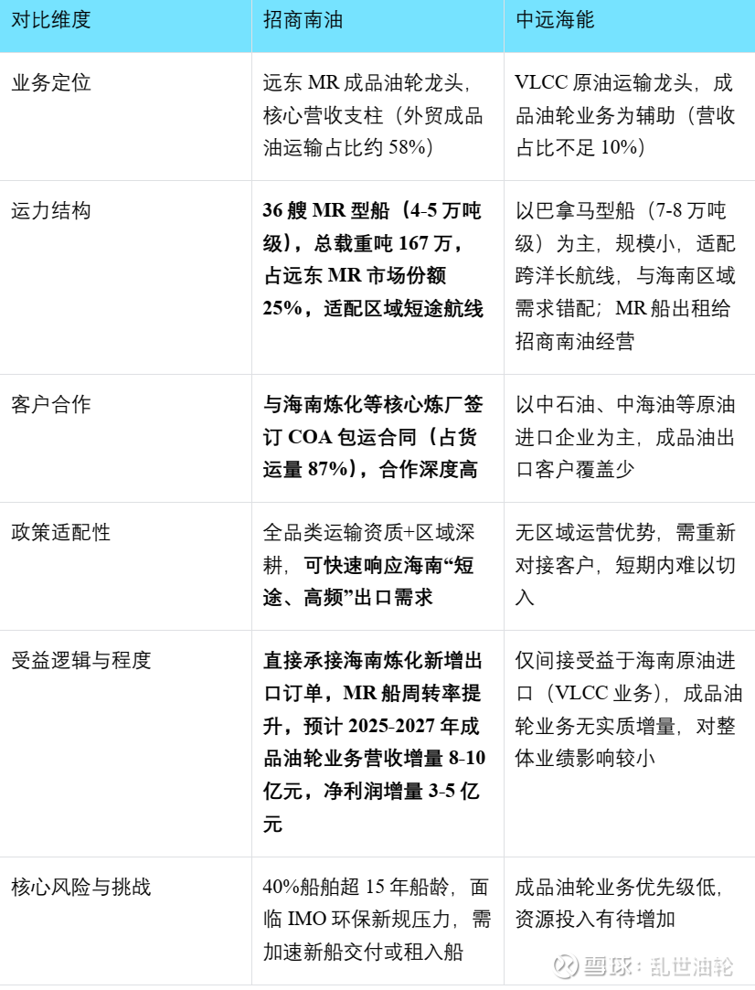 海南成品油出口配额管理的放开,本质是贸易自由化便利化的制度创新,将推动海南成为区域油品贸易枢纽,同时为石化产业链各环节带来显著红利。受益企业中,海南炼化是炼化板块核心受益方,本地保税加油、贸易物流企业同步分享配套红利;而成品油轮运输板块呈现明显分化 ——招商南油凭借 “MR 船队 + COA 合同 + 区域深耕” 的三重优势,成为直接核心受益企业;中远海能因业务重心在 VLCC 原油运输,成品油轮业务部分受益。整体来看,政策对海南石化产业的拉动作用将持续释放,核心受益企业的业绩增量具备较强确定性。#能源# #商业航天# #商业航海# @周期王国 @红中学长 @HIS1963 @浪里掌帆人 @价值事务所