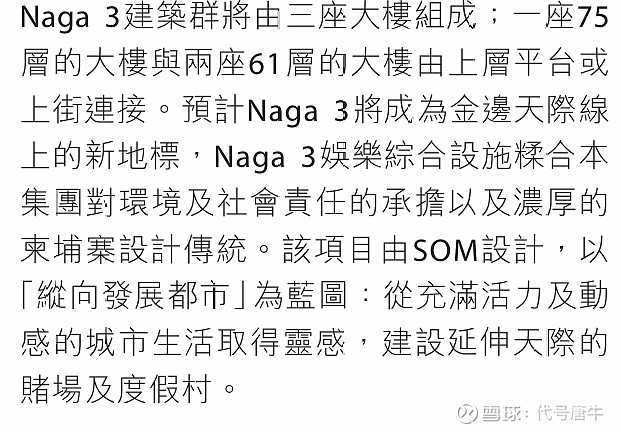 $金界控股(03918)$ 上次发文收到了很多朋友的点赞,虚荣心得到了满足,激励我加大对金界研究的动力,今天给大家梳理一下Naga3项目。