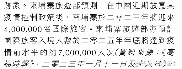 2018年中国出境游客达1.5亿人次,公司预计2020年中国出境游客将达到2亿人次,柬埔寨旅游部长预测2028年柬埔寨需新增十万间酒店房间。2019年前11个月中国赴柬游客220万,占总游客的比例是37%,是当时柬埔寨的第一游客来源国,远超当时第二越南(14%)和泰国(7%),柬埔寨官方定出目标2025年吸引550万中国游客(目前预计25年全年120万左右),naga3是在这样乐观的预期下定项的。很显然黑天鹅事件让管理层对市场需求出现了误判,而naga3按原进度落成后很可能出现供给过剩,在经历疫情毒打之后,2023年的年报中如下写到“我們還謹慎及認真考慮開發Naga 3的方案以符合市況,其中包括調整項目規模”,并在不久之后做出了项目延期的决定。