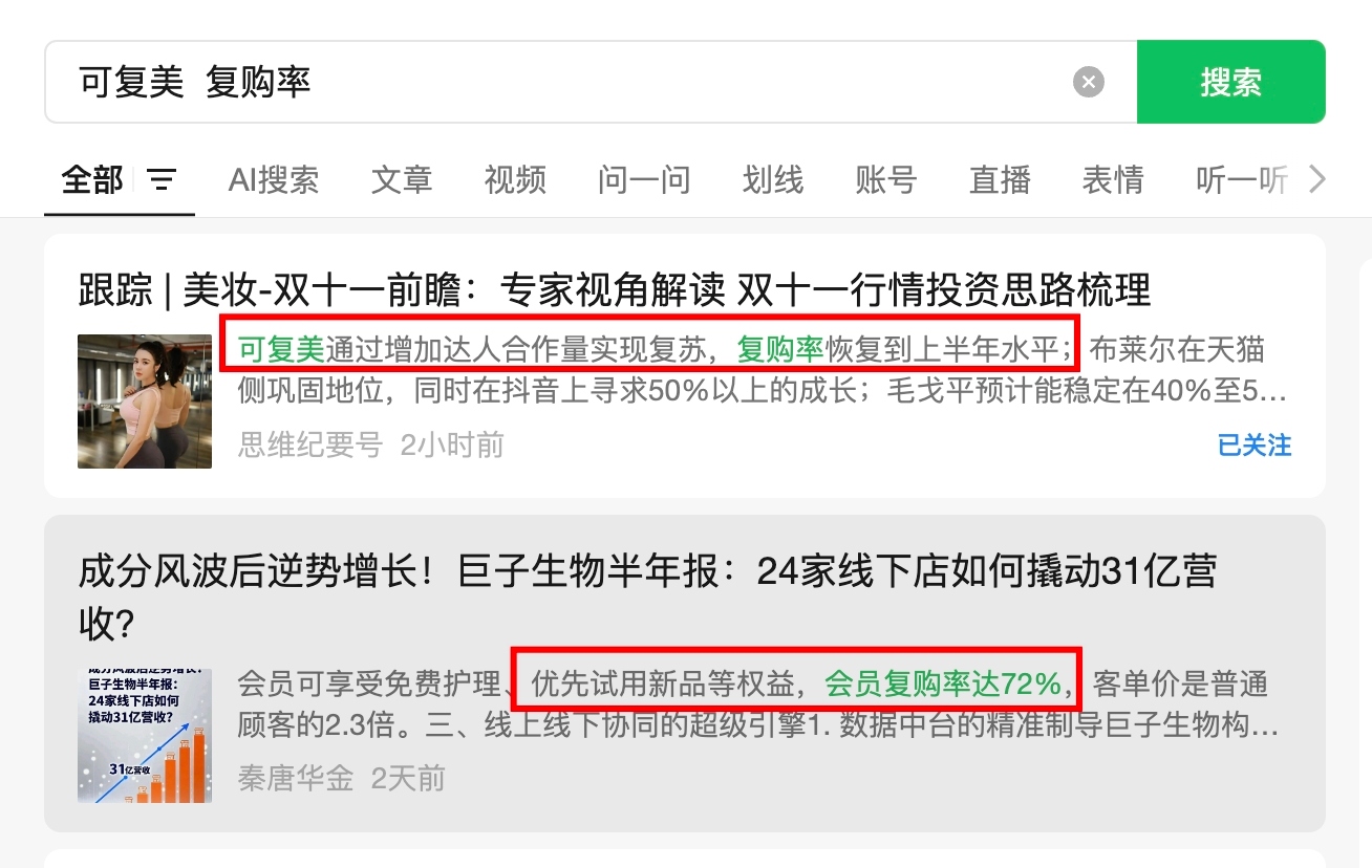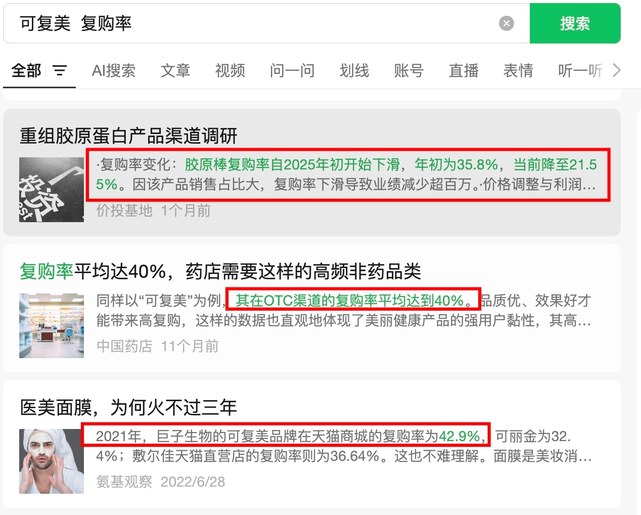 但维稳、修复不是这样的,可复美产品力行不行,是可以一周,最多一个月检验的。