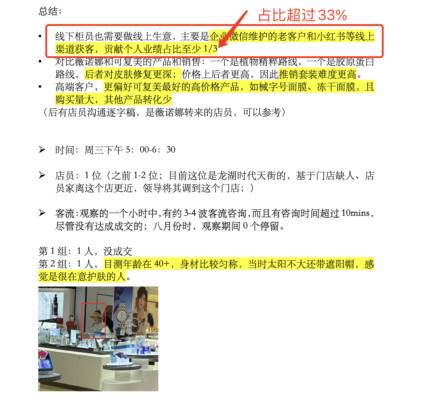 这些信息是很简单,但说明门店柜姐们,有大量非线下客户,且不是走天猫淘宝渠道,说明线下大概率见过,意味着基本是复购客户。