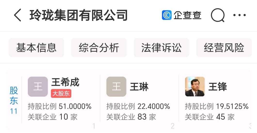 玲珑集团是什么来路?企查查显示,玲珑集团第一大股东王希成(董事长王锋的父亲)持股51%,王琳(王锋之弟)持股22.4%,王锋(玲珑轮胎现任董事长)持股19.51%,张光英(王希成配偶)持股4.425%,可以说,玲珑集团增持,就是董事长一家人增持。