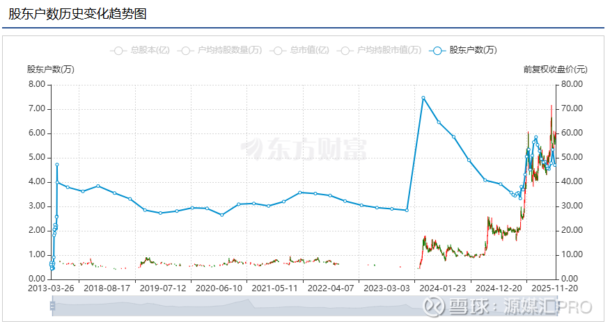 散户的增加更为迅猛。2024年底常山药业股东户数还稳定在3.5万户左右,2025年7月直接飙升至5.8万户,半年新增散户超2万户。机构与散户的竞相涌入,在2025年二季度形成共振——机构借赛道热度抢筹控盘,散户跟风“赌减肥神药上市”,两者共同将常山药业的股价从23元推至71元的历史高位。