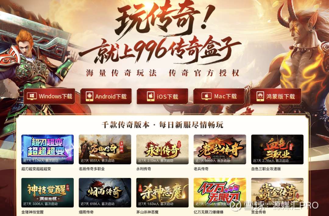 如今,开放世界、女性向、二游、射击竞技瓜分用户注意力,传奇所依赖的那套男性爽感叙事不再具备绝对统治力。尽管产业盘子越拓越大,但分流严重,份额稀释,传奇自然不可能永远靠滚服、广告投放来维持盈利效率。实际上,多个平台的网页版《蓝月传奇》已停止运营,众多明星代言人簇拥的《原始传奇》也在排行榜上查无此游。