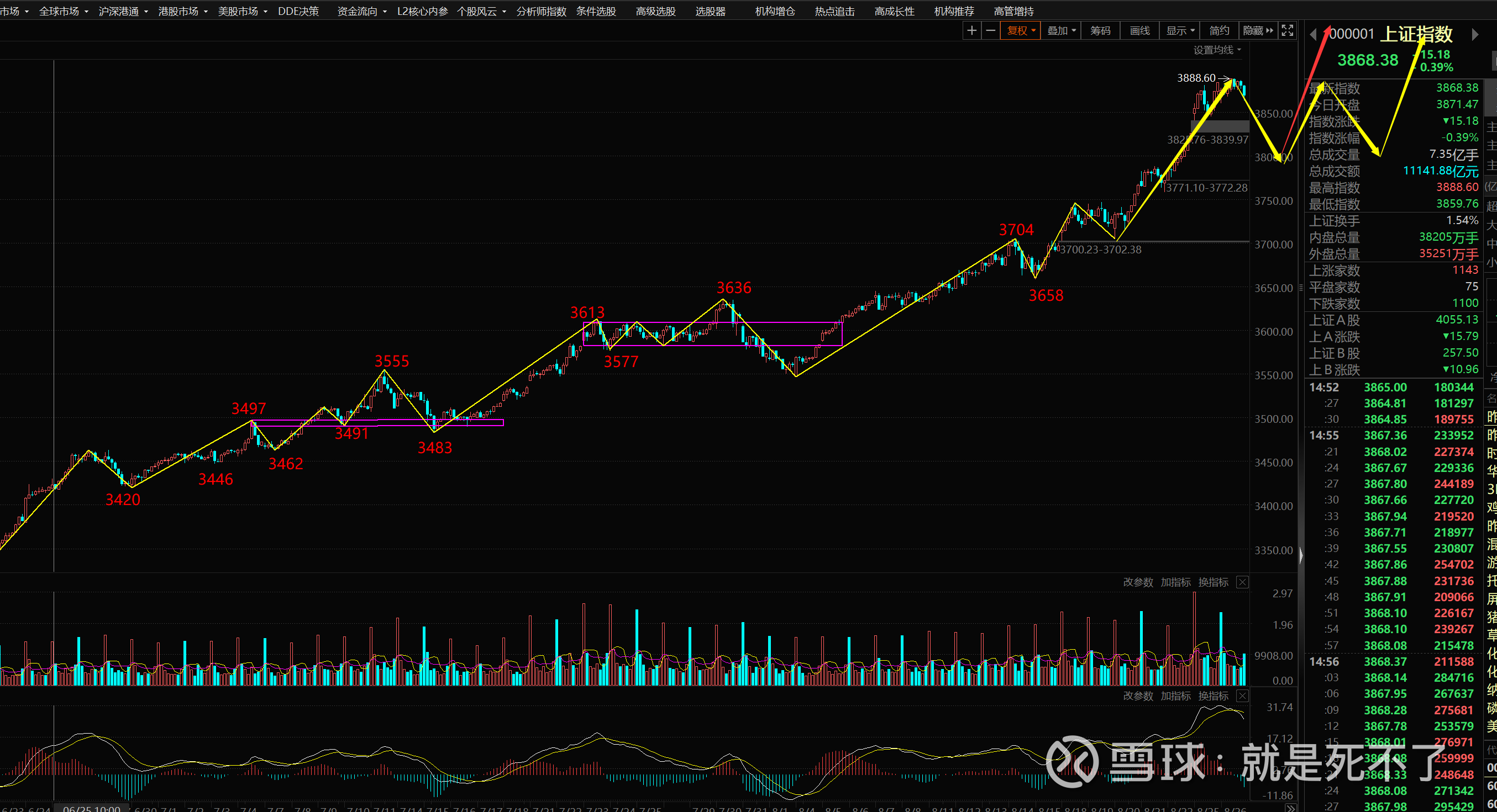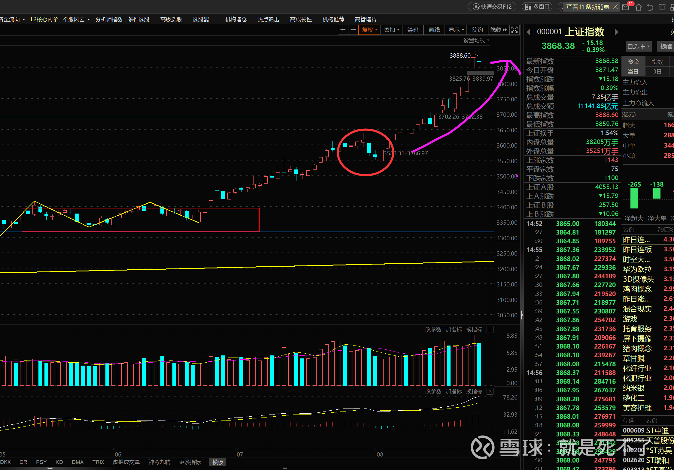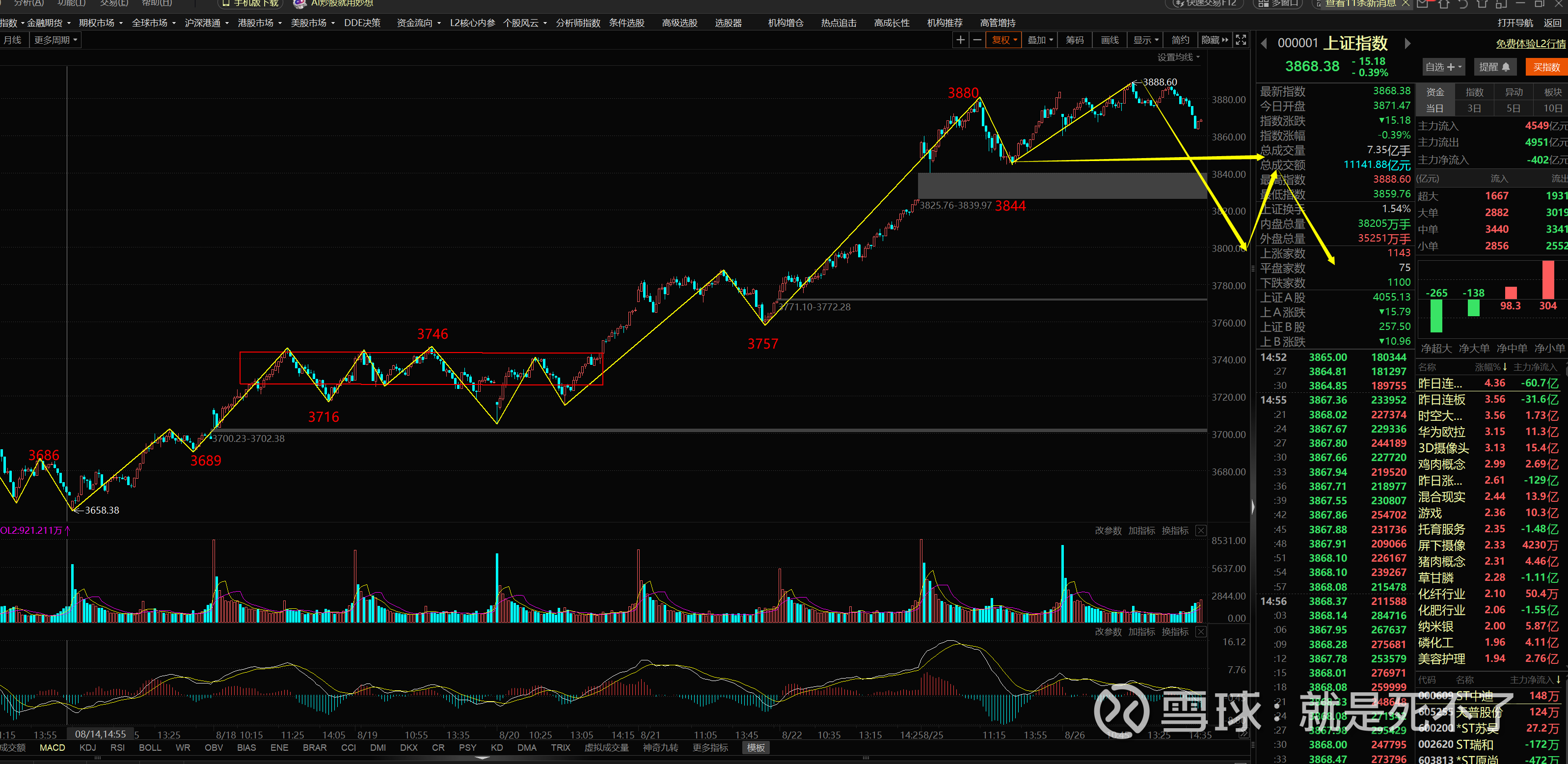 那么未来几天的风险就是,盘中出现大幅跳水跌破3844,然后分时图的反弹无法摸到3844,再继续跳水。
