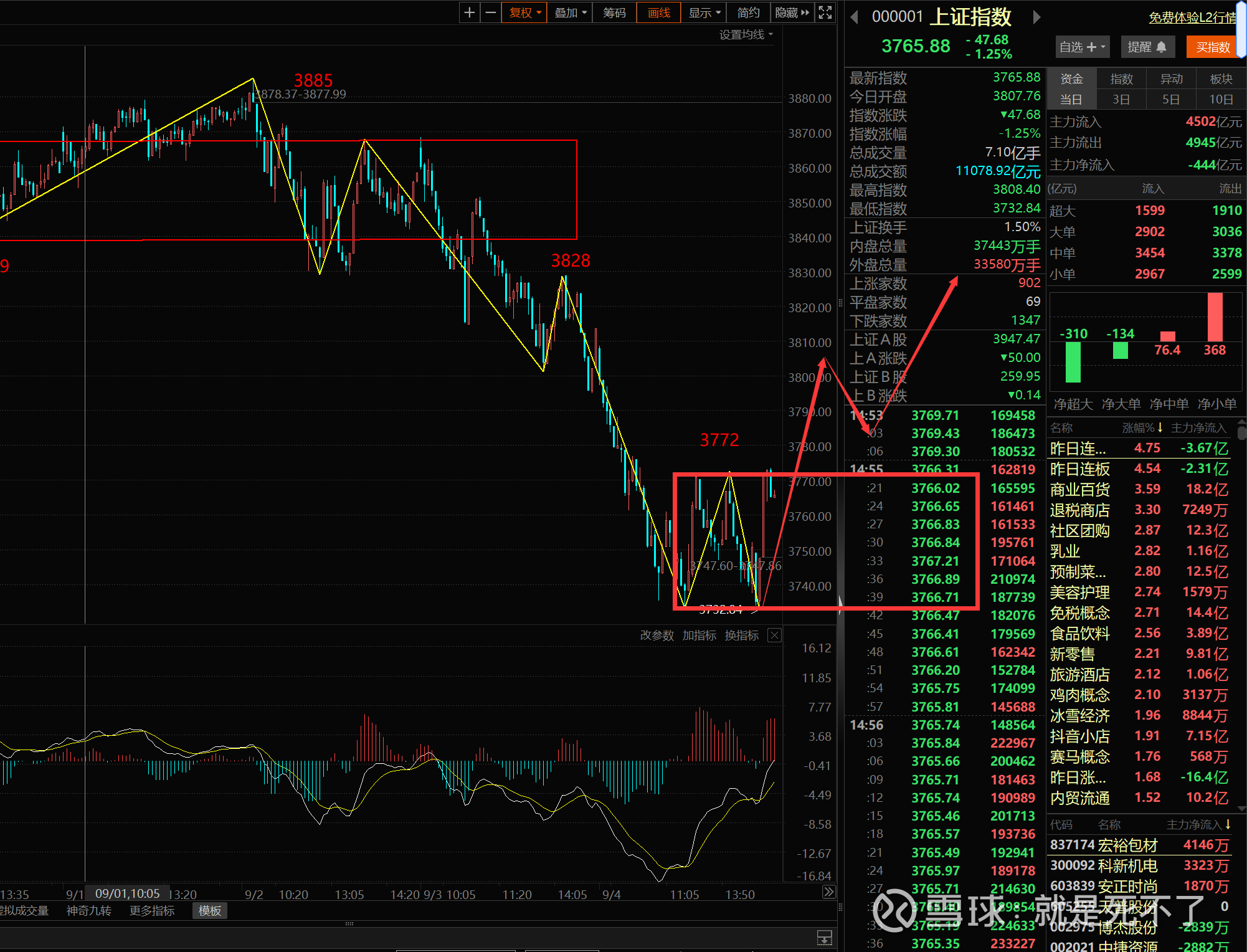 如果在9月2日减仓,今天回补的,往上反弹还可以做一次差价。