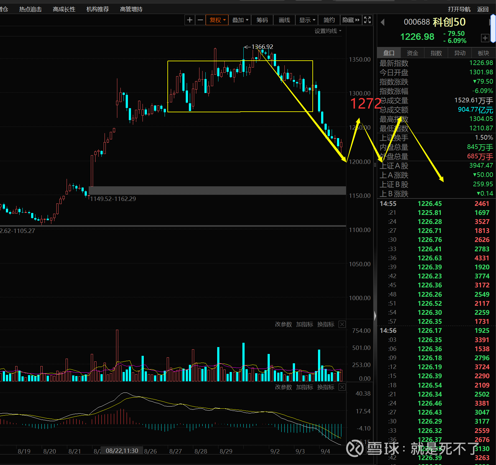 顺便说一下科创50,未来的30分钟反弹如果无法站上1272,就会做一个30分钟的中枢继续创新低,那个低点才是真正的低点。