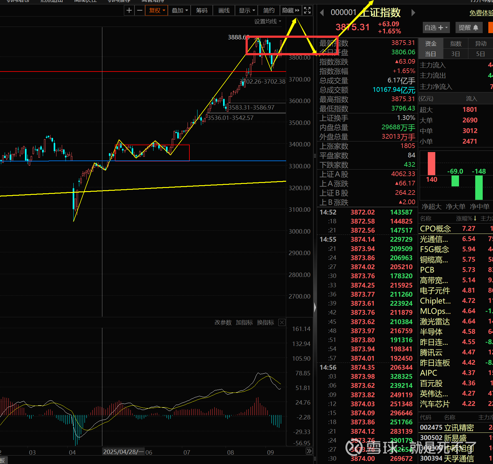 如果CPO还是冲的那么猛,不分点肉给别的板块吃,这波上涨就会选择2,创新高后还要跌破3888。