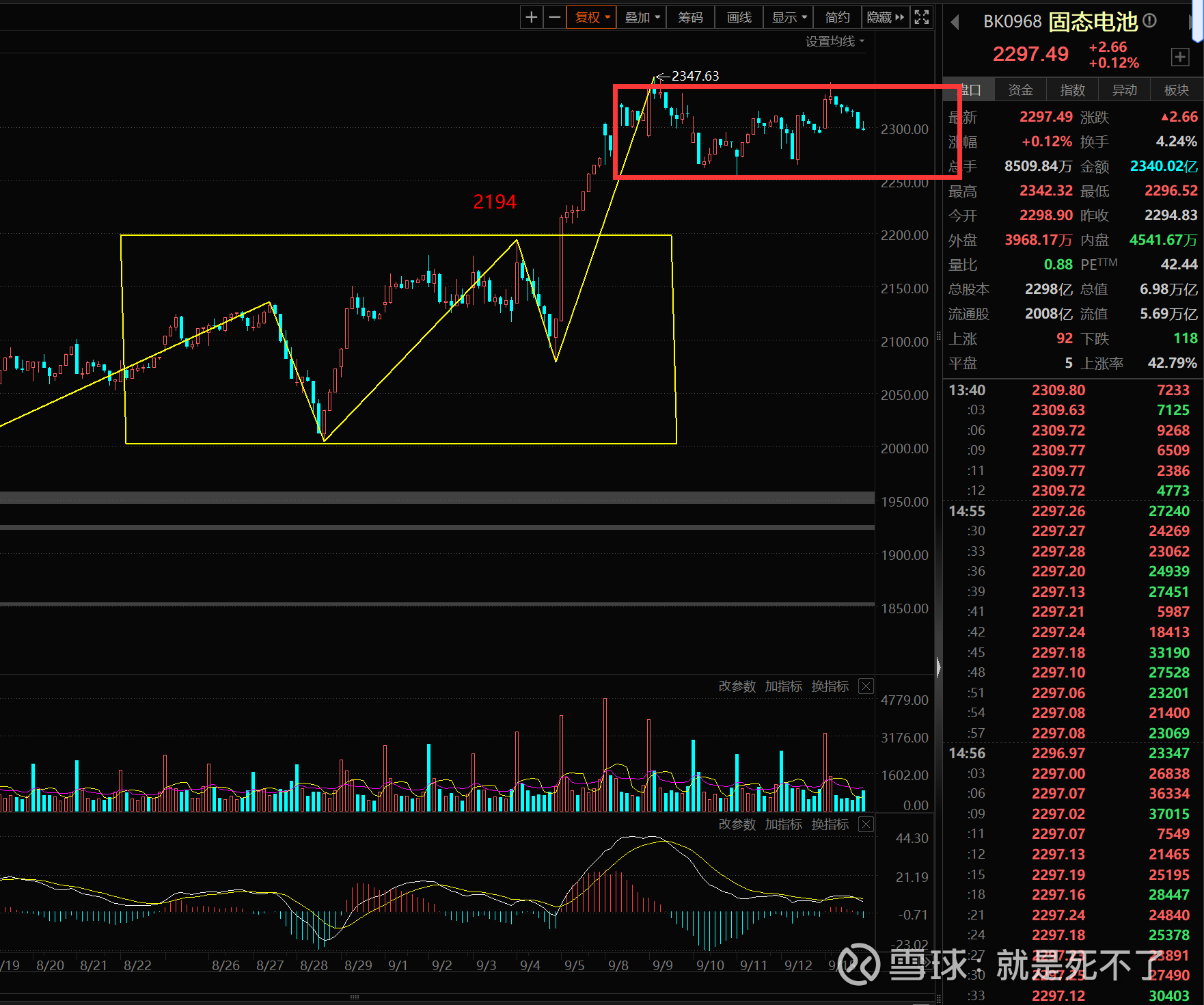 固态电池,今天没有新高,就不是背驰,如果接下来30分钟创新高要看看上涨力度,力度不强可以考虑减仓。