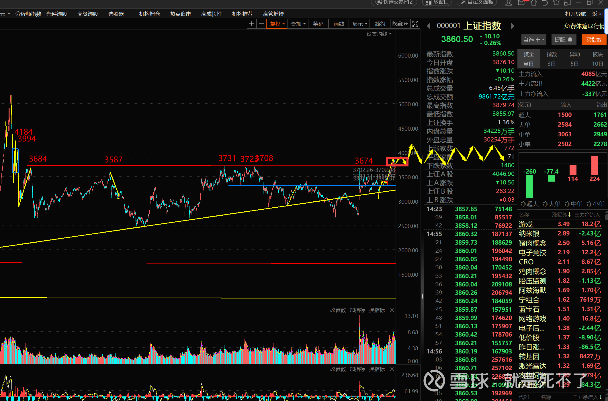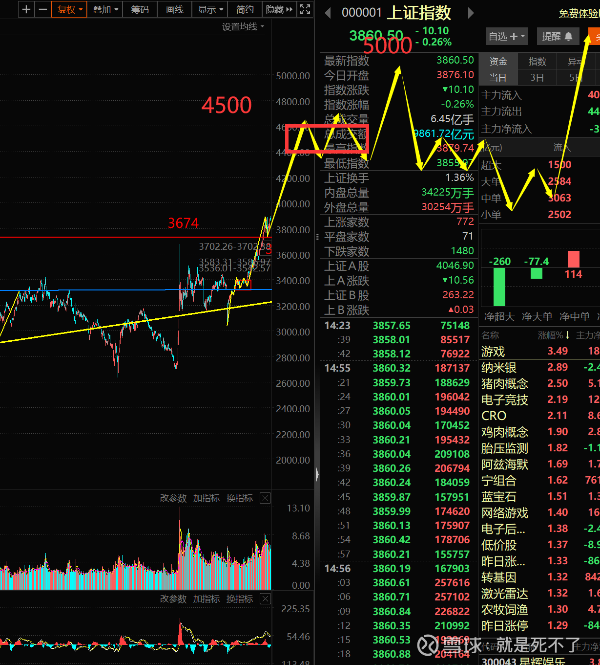 如果是这样,指数可能要冲到4500点在做中枢,这样这个牛市的第一波甚至有可能直接摸到5000点,到了5000点后再给你跌个大半年,跌掉1000点,再慢慢的起来,你能说这不是慢牛?