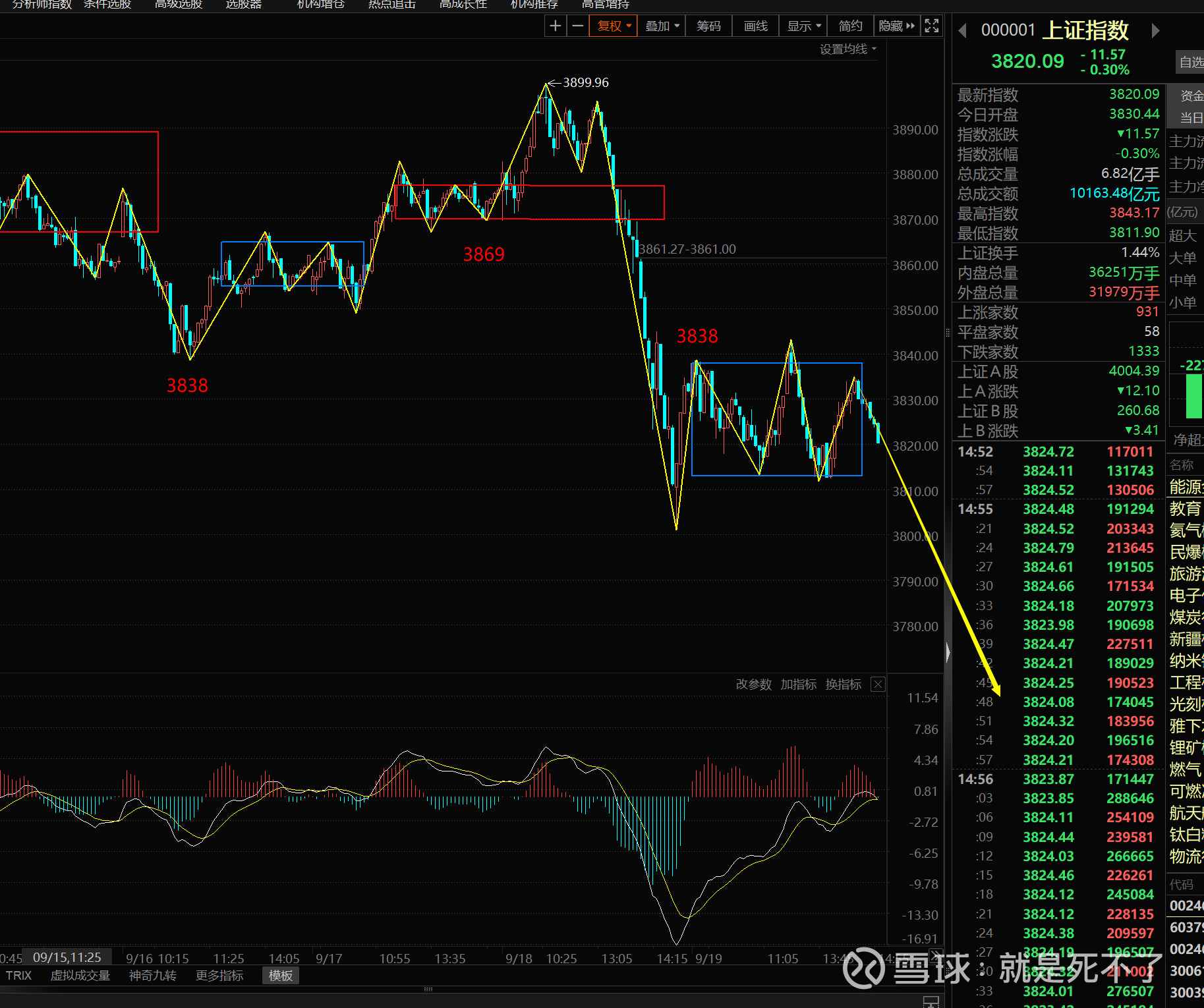 上证指数的30分钟反弹的高点必须在3880之上结束,如果30分钟的反弹结束的位置在3850之下包括3850附近。