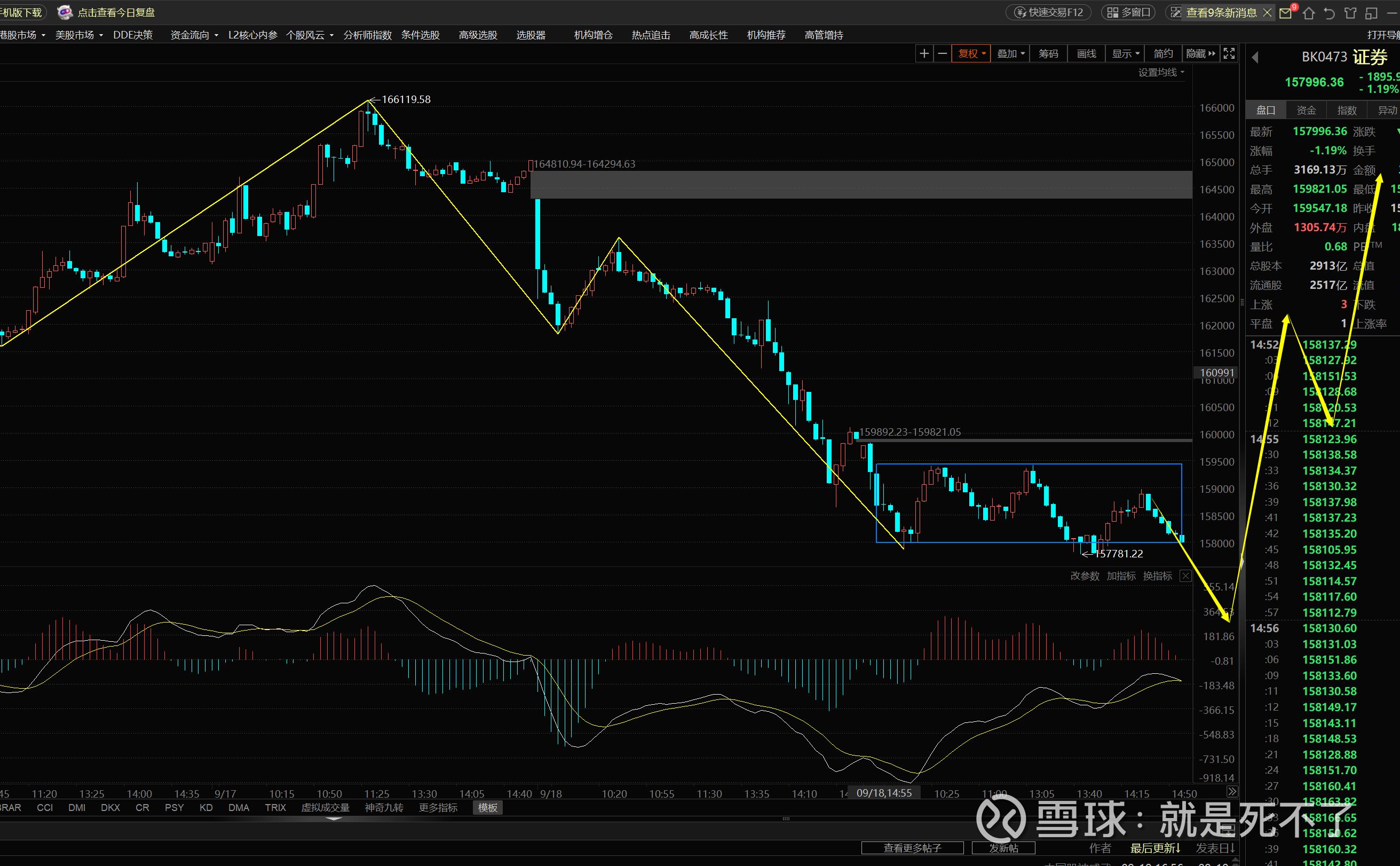 今天就是一个5分钟的弱势震荡,构筑了一个下跌中枢。