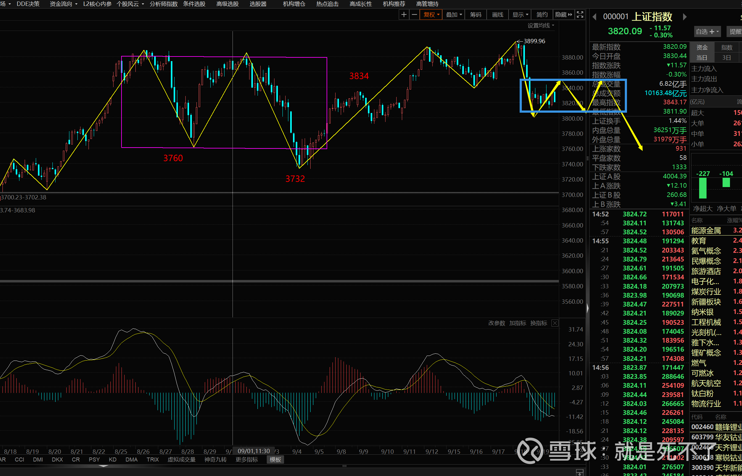 而且要当心,虽然现在指数是3820,看似离最高点跌了80点,这个80点几乎全是银保证和红利股贡献的。