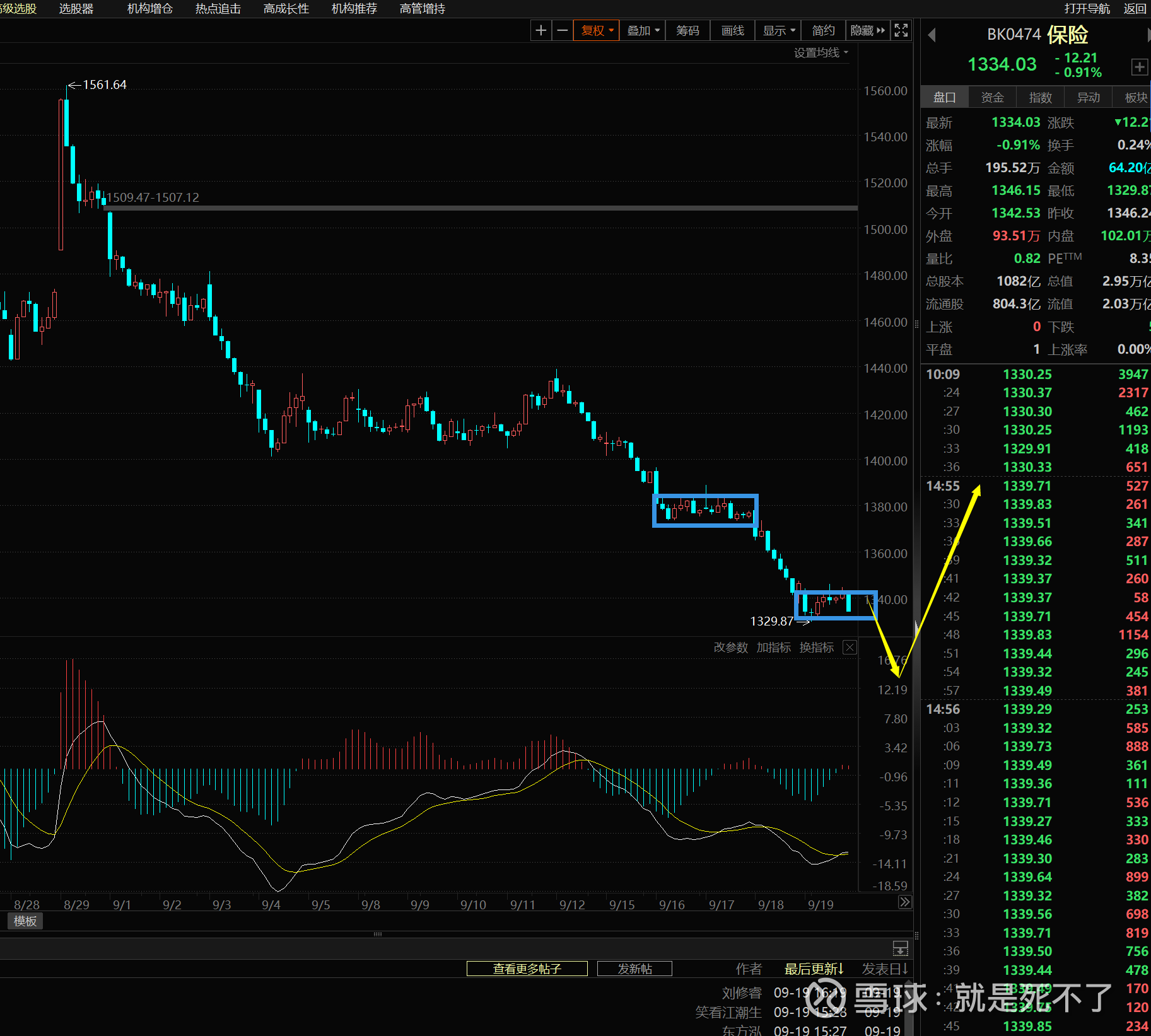 只要大黄不跟昨天一样把保险和证券砸个3-4%的跌幅,跌幅控制在1%左右都会引发背驰,触发大小级别的反弹。