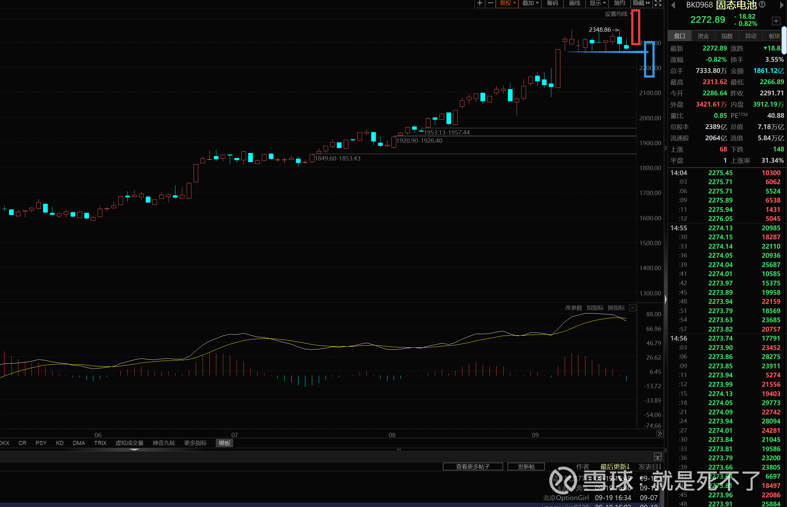 固态电池,酝酿变盘,守住最近小K线的低点即可,不是大阳就是大阴,因为现在是牛市,所以出阳的概率偏高。