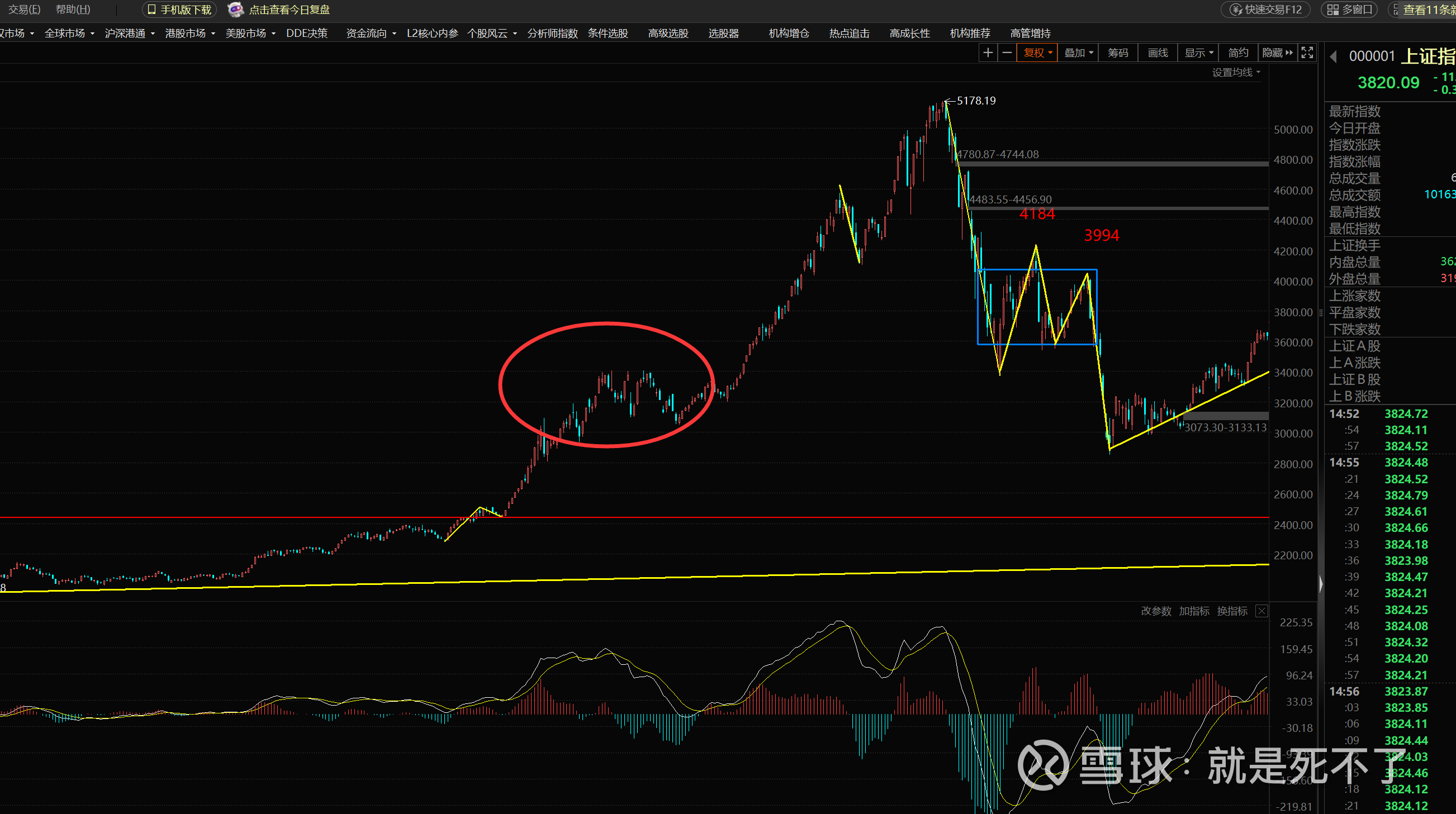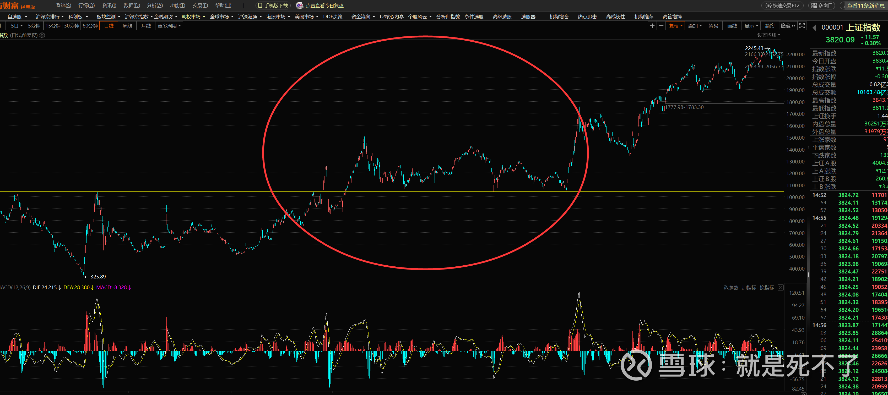过去一共3轮大牛市,只有1996年到2001年的慢牛是玩这个恶心的套路,其他都是突破牛熊分界线,要在原离牛熊分界的上面做日线中枢的